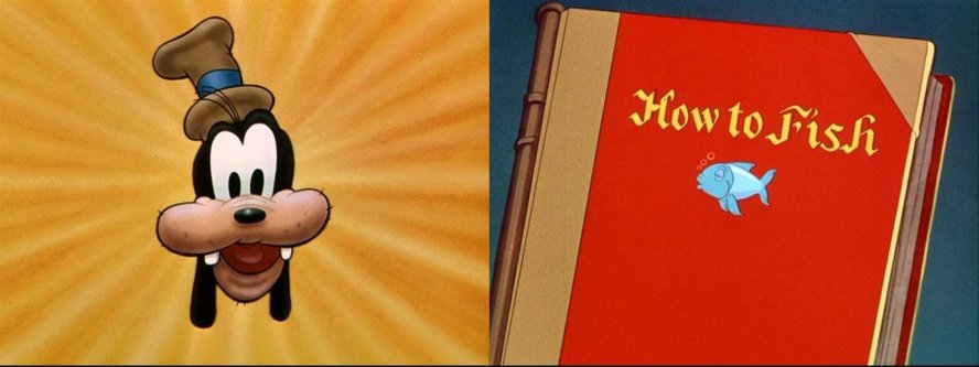 In this cartoon Goofy demomstrates the art of fishing.